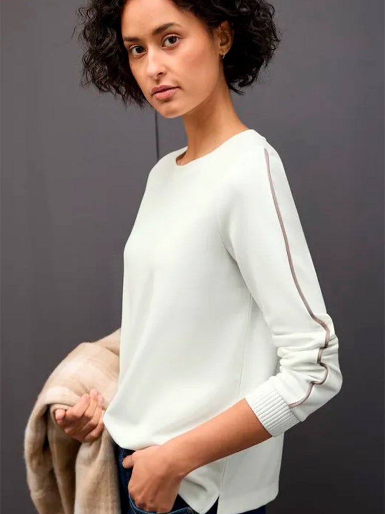 Camiseta con detalles de cinta que aportan un toque contemporáneo. Su escote barco realza la silueta, mientras que su tejido suave ofrece comodidad durante todo el día. Perfecta para crear conjuntos casuales con un estilo actual.