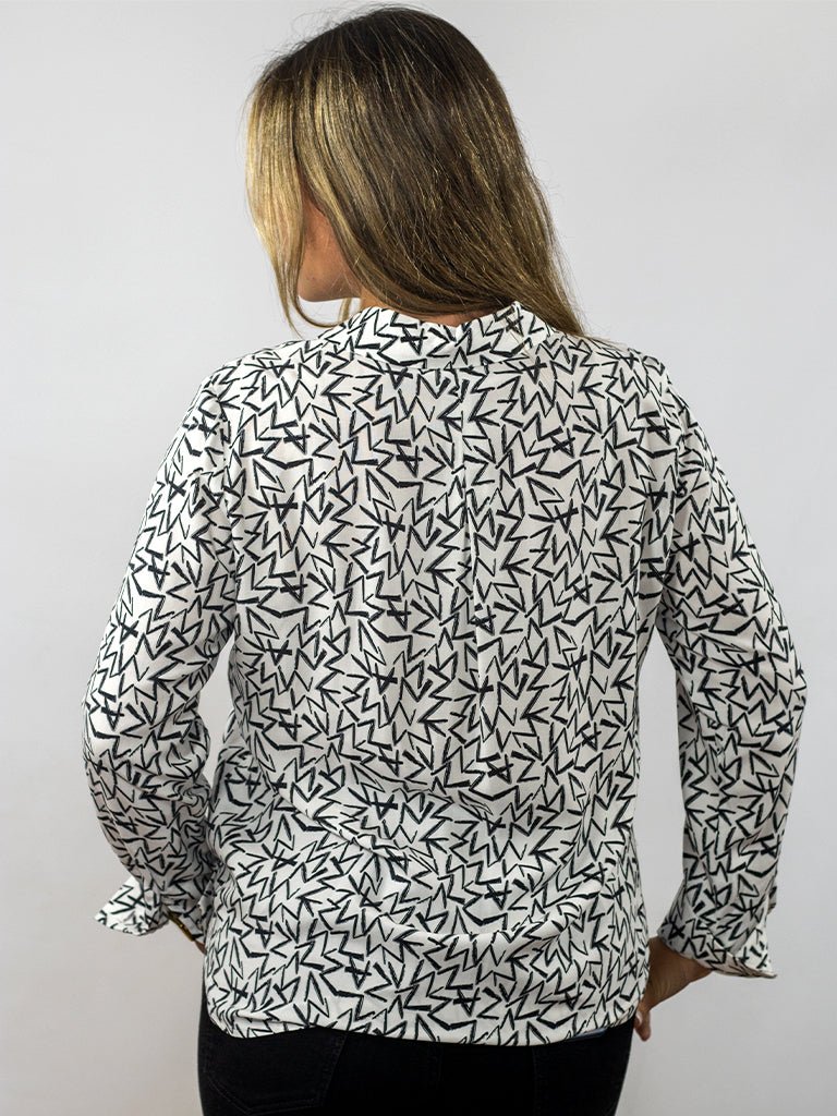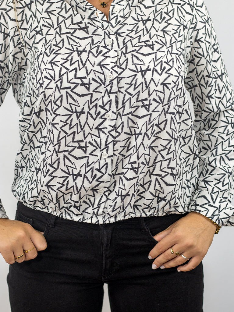 Esta camisa estampada ofrece un diseño único con una silueta larga en la parte trasera para. La parte delantera incorpora una goma suave en el bajo que permite abullonar el tejido, aportando estilo y versatilidad a tu look. Perfecta para quienes buscan una prenda moderna que combina comodidad y personalidad.