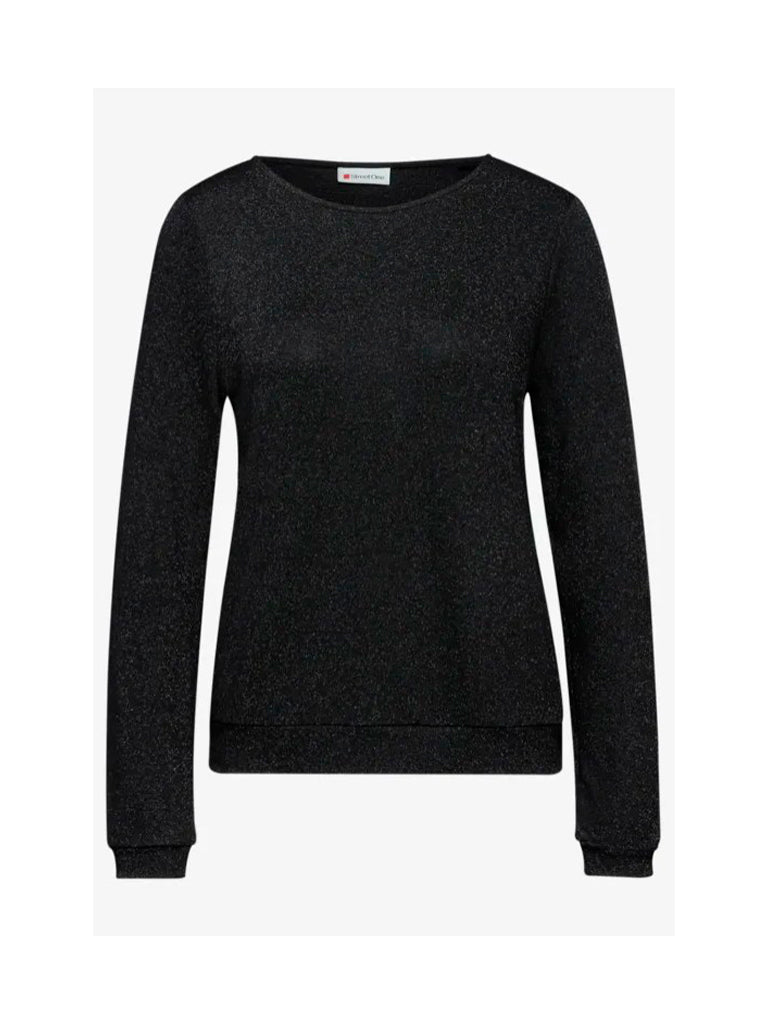 Camiseta de manga larga, que destaca por su delicado look con brillo y su apariencia de tejido liso. El escote en forma de barco y los puños en las mangas completan el estilo elegante, perfecta para momentos especiales.