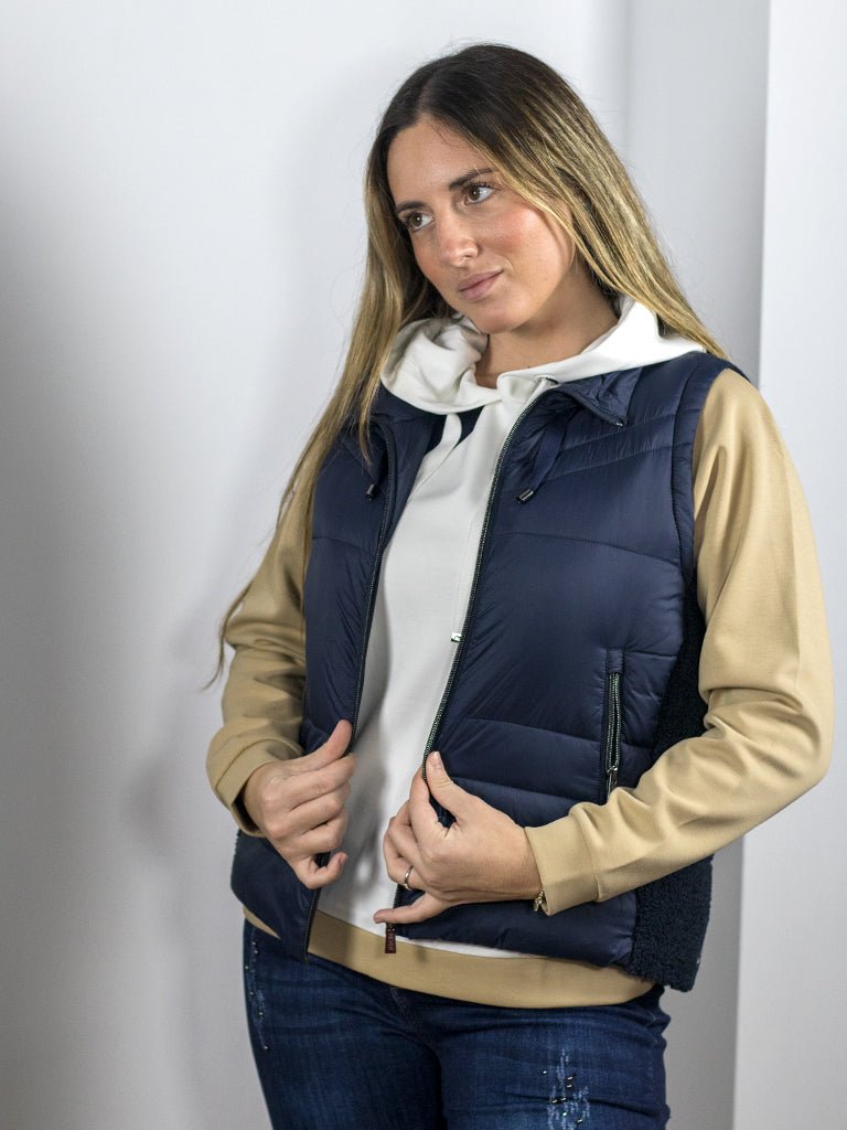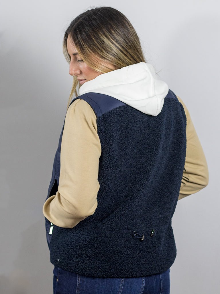 Chaleco con cremallera, acolchado técnico del frente que te proporciona calidez y protección, mientras que el suave borreguito en la espalda envuelve tu cuerpo en confort absoluto. El cordón trasero ajustable que te permite personalizar el entalle.
