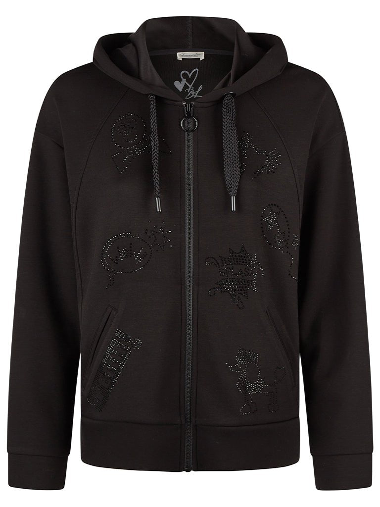 Chaqueta tipo sudadera destaca por sus detalles brillantes. Diseñada con material técnico de alta calidad, ofrece comodidad y durabilidad. Los cortes laterales proporcionan un ajuste moderno y favorecedor, mientras que la capucha y cremallera facilitan su versatilidad. Ideal para looks casuales.