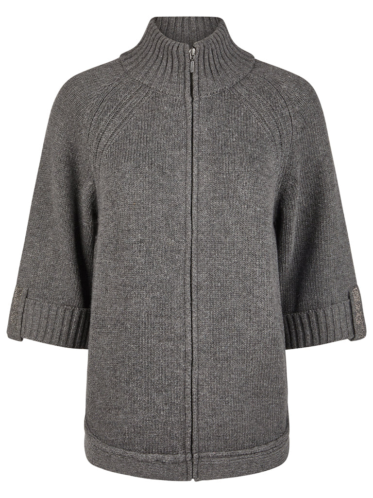 Chaqueta con mangas 3/4 y cierre de cremallera para un ajuste perfecto. El detalle brillante en la manga añade un toque a cualquier look. Forma redondeada.