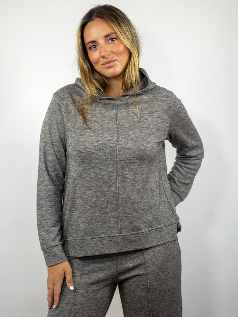 Este jersey fino tipo sudadera con capucha combina comodidad y estilo urbano. La costura central decorativa y los dos cortes centrales aportan un toque moderno. Una prenda cómoda y versátil.