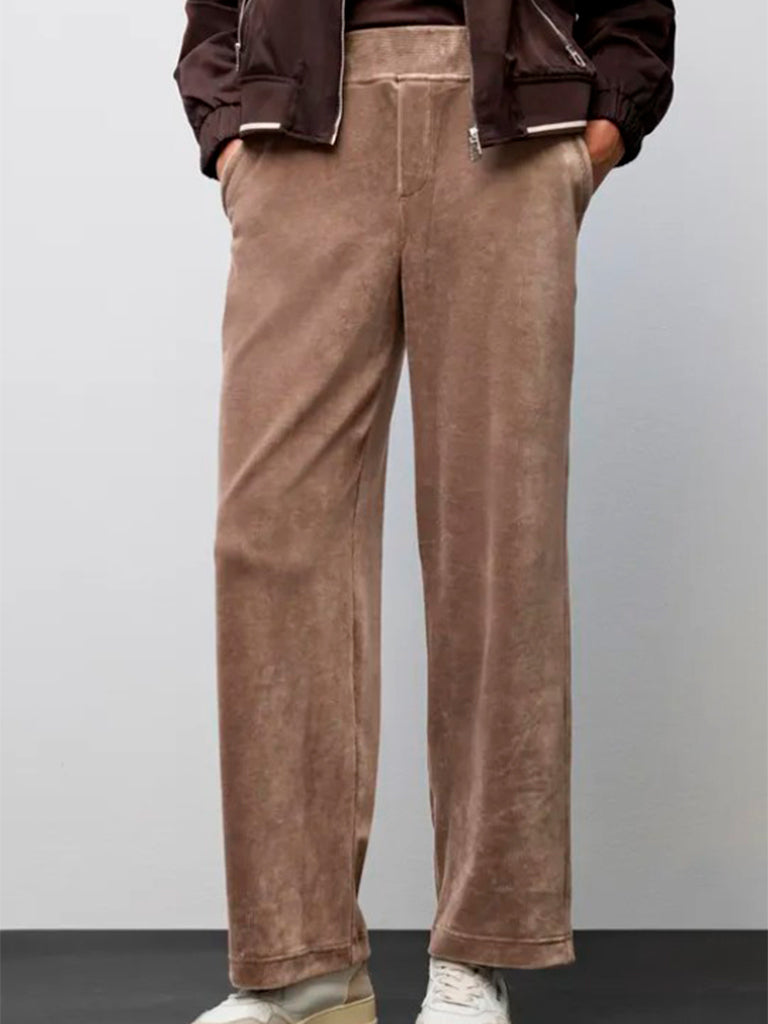 Pantalón de pana con cintura alta y pierna recta . La suave tela de pana ancha proporciona una sensación envolvente y acogedora, perfecta para los días frescos. Con cintura elástica trasera y bolsillos laterales.
